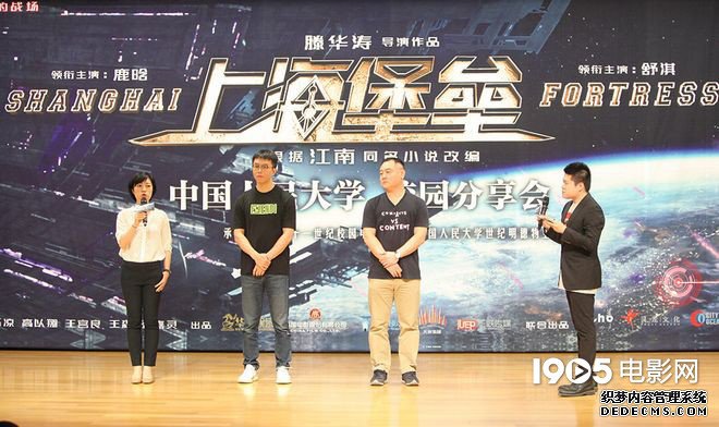 1905电影网讯 在《流浪地球》逆袭成为春节档冠军后,科幻电影俨然成为了下一个风口。同样是科幻题材的《上海堡垒》在经历漫长制作周期之后,终于在暑期档要和观众们见面。主创也在上映前展开路演宣传电影。导演滕华涛和《上海堡垒》原著作者、编剧江南来到了中国人民大学,畅谈电影幕后。