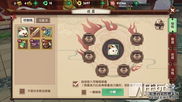 干将(物理):拍卖、聚宝盆、锻造80级以上金色/红色品质武器等途径获得;三、器灵分解