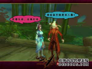 第一次接触网游的我觉得仙侠世界里一切都是美好的,从没见过那么美丽的NPC,从来没见过那么可爱的小怪兽,叫我怎么忍心下杀手啊啊啊!但我知道,有一种生物是最恐怖的,比凶猛的怪兽还恐怖,他们的标志就是拥有血红血红的名字。“红名”绝对是这唯美仙侠世界里最煞风景的生物,也不知道他们干嘛总是好端端的杀人。看,眼前就有一个,地上躺着好几个人,他的名字都红到极致了,鄙视他!我是该立刻离开这个是非之地,还是上去与那魔头理论一番呢?好吧…… 跟他拼了!
