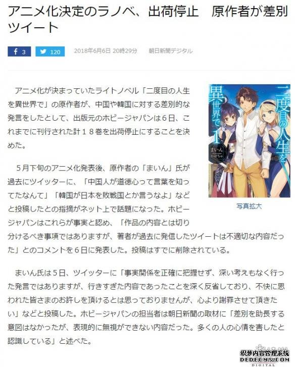 这段时间一部名为《在异世界开拓第二人生》的日本轻小说动画化的消息成为了一个热点,这部由まいん连载的异世界穿越小说,因为其主人公的恶劣设定和作者在推特上嘲讽中韩的发言,让大家感到非常的愤怒,并向作者和出版社等提出了严正交涉。之前被曝光的参演声优都纷纷发表声明辞演,作者也删除了嘲讽推特并且道歉,根据最新的消息,目前本作的动画化已经停止。 日前,官方正式发表声明表示《在异世界开拓第二人生》动画化停止,并且小说文库版出版方Hobby Japan也发出公告将停止实体小说的发售。这个结果可以说是大快人心,有些底线是绝对不能碰触的,烈焰私服发布网,希望这次事件能给那些心中还有魔鬼的作者们提个醒,太跳脱的结果是很严重的。