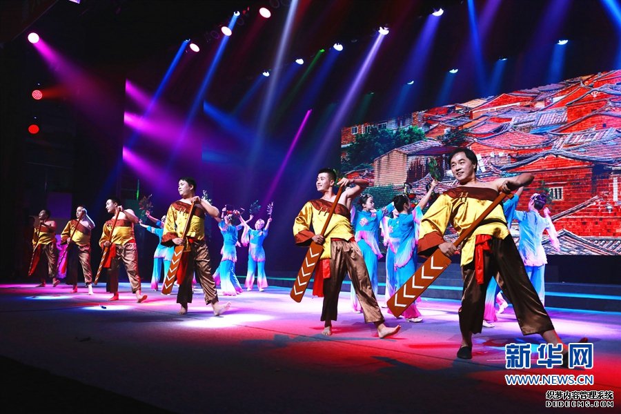 6月6日晚,晋江市(安海)第八届两岸端午民俗旅游文化节正式开幕。图为开幕式现场举行的文艺表演。新华网发(林楷煜 摄)