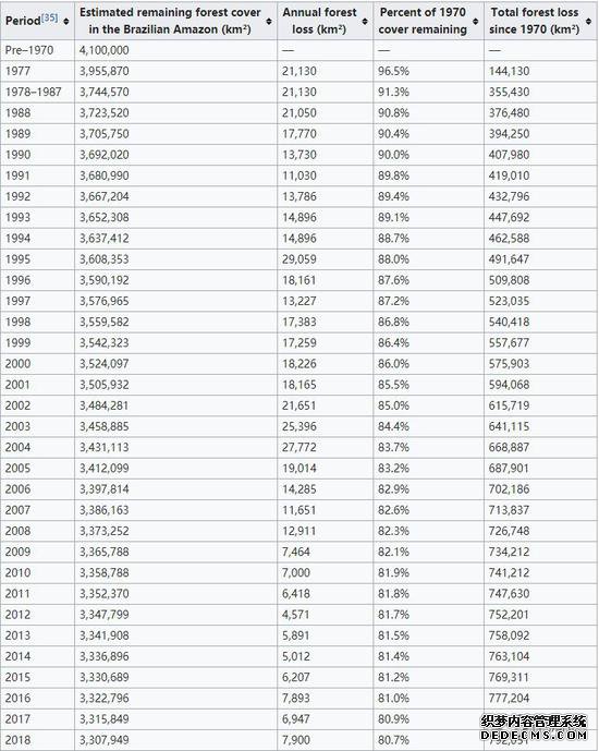 但根据维基百科的数据,在2008年之前,每年的雨林砍伐数量都维持在12000平方公里以上,2002、2003、2004年分别达到21651、25396以及27772平方公里。