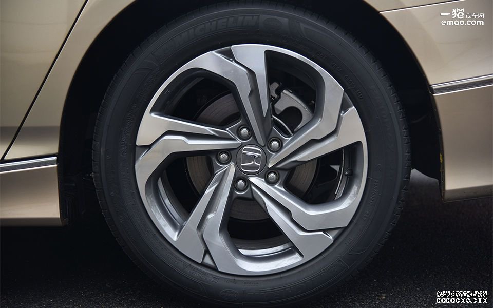 十代雅阁轮毂采用风火轮式造型,同样比较动感,但轮胎尺寸只有225/50R17,视觉效果上略逊一些。轮胎采用的米其林浩悦3ST系列,主要强调的是静音舒适。