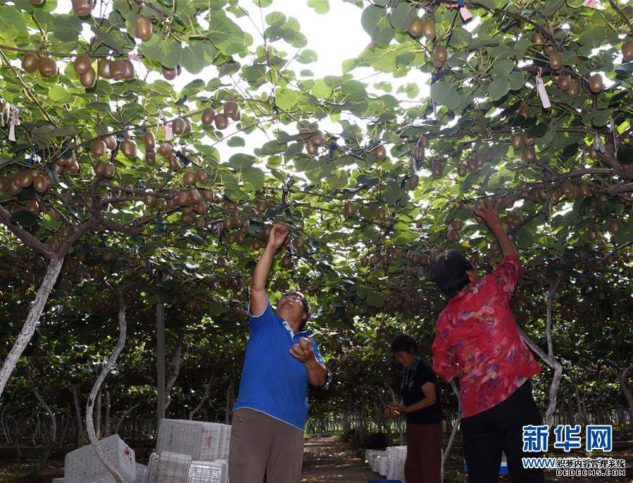9月4日,源泉镇一家猕猴桃专业合作社的工作人员在采摘猕猴桃。当下正值山东省淄博市博山区源泉镇猕猴桃成熟的季节,当地种植猕猴桃的农户正忙着采摘猕猴桃。近年来,源泉镇立足自然生态优势,着力发展猕猴桃特色产业。目前,全镇沿淄河两岸猕猴桃种植规模达到1.2万亩,达到盛果期后亩产效益2万元,将实现产值约2亿元,成为当地乡村振兴的“致富果”。新华社记者王凯摄