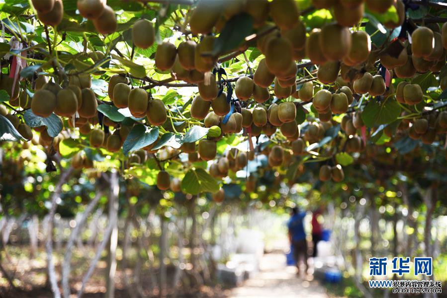 9月4日,源泉镇一家猕猴桃专业合作社种植的猕猴桃已经成熟。当下正值山东省淄博市博山区源泉镇猕猴桃成熟的季节,当地种植猕猴桃的农户正忙着采摘猕猴桃。近年来,源泉镇立足自然生态优势,着力发展猕猴桃特色产业。目前,全镇沿淄河两岸猕猴桃种植规模达到1.2万亩,达到盛果期后亩产效益2万元,将实现产值约2亿元,成为当地乡村振兴的“致富果”。新华社记者王凯摄