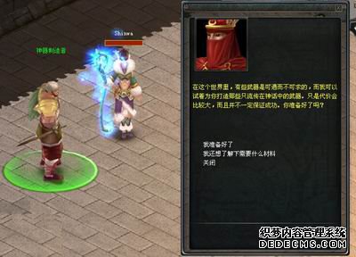 1、与NPC对话,打开合成窗口,将收集的材料按名字放进合成窗口的专属位置。